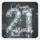 Silver Diamond Glamour Black 21st Birthday Party Square Sticker