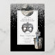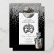 A bold New Year's Eve masquerade party foil invitation for your celebration, featuring a beautiful mask and gold and silver disco ball.