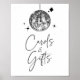 This is a Silver Sparkly Disco Ball Sign Cards and Gifts Sign!