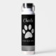 Silver Dog Paw on black background Water Bottle
