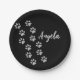 Silver Dog Paws black Background Print Pattern Paper Plate