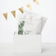 This design features silver dollar eucalyptus leaves and branches. The beautiful greenery of the eucalyptus leaves compliment the elegant black modern thin border surrounding the wedding wording. A perfect fusion of modern and chic with eucalyptus silver green colour tones. Silver green, black and white are a perfect match for a rustic greenery themed wedding. Unique wedding favour bag design with modern elements. Matching wedding invitations and other stationery items are also available.