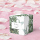 This design features silver dollar eucalyptus leaves and branches. The beautiful greenery of the eucalyptus leaves compliment the elegant black modern thin border surrounding the wedding wording. A perfect fusion of modern and chic with eucalyptus silver green colour tones. Silver green, black and white are a perfect match for a rustic greenery themed wedding. Unique wedding favour box design with modern elements. Matching wedding invitations and other stationery items are also available.