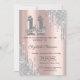 A modern, chic, and glamourous with glitter drips on a rose gold background.