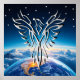 At sunrise a silver eagle flies above the Earth towards the stars.