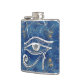 Silver Egyptian Eye of Horus on blue marble Hip Flask