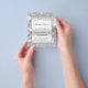 A modern silver checked pattern as background. Personalise and add a name and party details.