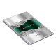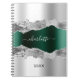 Faux silver and emerald green metal and agate, marble stone print as background Personalise and add your name. The name is written with a modern hand lettered style script.