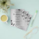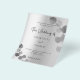 A modern, elegant and minimalist wedding invitation. Faux silver metallic looking background decorated with eucalyptus, sprigs. Personalise and add your names and wedding details. Black coloured letters.