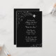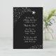 Shooting silver stars on a black background are featured on this stylish formal event invitation. Perfect for a stars themed prom, starry night prom theme, or any star themed formal dance. Designs are printed illustrations/graphics - NOT ACTUAL SILVER FOIL.