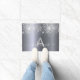 A faux silver metallic looking background with faux silver glitter dust. Personalise and add your family name and monogram letter, initial. White and grey coloured letters. The name is written with a trendy hand lettered script with swashes. To keep the swashes only delete the sample name, leave the spaces or emoji's in front and after the name.