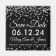 Elegant wedding "Save The Date" design with Silver Faux Glitter Confetti Black, and custom names and date text.