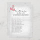 Enjoy playing this Who Knows Daddy Best? baby shower game on a silver background with cute silver triangles. A darling flamingo ballerina mummy and baby in lower left corner with pink rose florals on head and beside bodies. Templates provided on back.