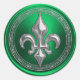 Silver Fleur de Lis on Green Background Classic Round Sticker
