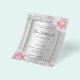 Faux silver looking background decorated with blush pink and white florals, flowers and faux silver glitter, sparkles. Personalise and add your names and wedding details. Black letters.