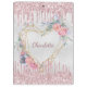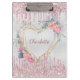 A faux silver background. Blush pink faux glitter drips, paint dripping look as decoration. A golden heart decorated with pink flowers. Personalise and add a name. The name is written with a modern hand lettered script. Perfect for school homework, back to school.