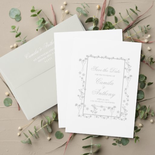 Silver Floral Border Wedding Menu