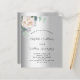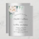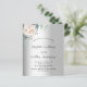 A faux silver looking background. Decorated with a white floral, peony flower and green watercolored eucalyptus greenery. Personalise and add your names and the details.