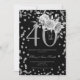 Silver Floral & Confetti 40th Birthday Black Invitation