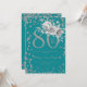 Silver Floral & Confetti 80th Birthday Teal Invitation