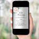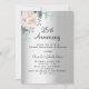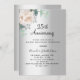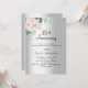 A faux silver looking background. Decorated with a white floral, peony flower and green watercolored eucalyptus greenery. Personalise and add your names and the details
