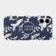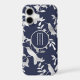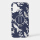 The feature on this phone case is a pretty silver silhouette hummingbird and foliage pattern on a dark blue background. At the centre is a round banner lined in matching silver, with your monogram also in silver. Elegant and attractive for anyone.
