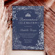 Silver floral navy blue photo Tiara Quinceañera Invitation