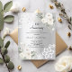 For an elegant and romantic 10th wedding anniversary. A faux silver looking background decorated with white florals, roses and white lace. Personalise and add your names and details.