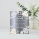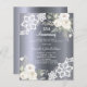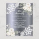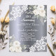 For an elegant and romantic 25h wedding anniversary, silver wedding. A dark faux silver looking background decorated with white florals, roses, white lace. Personalise and add your names and details.