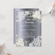For an elegant and romantic 25th wedding anniversary, silverwedding. A dark faux silver looking background decorated with white florals, roses, white lace. Personalise and add your names and details.