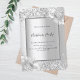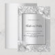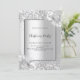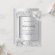 Faux silver looking background decorated with florals, flowers and faux silver glitter, sparkles. Personalise and add your party details. Black letters.