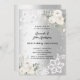 For an elegant and romantic 60th wedding anniversary. A faux silver looking background decorated with white florals, roses, white lace and diamonds. Personalise and add your names and details.