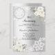 For an elegant and romantic 10th wedding anniversary. A faux silver looking background decorated with white florals, roses and white lace. Personalise and add your photo, names and details.