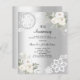 For an elegant and romantic 10th wedding anniversary. A faux silver looking background decorated with white florals, roses and white lace. Personalise and add your photo, names and details.
