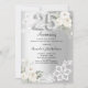 For an elegant and romantic 25th wedding anniversary. A faux silver looking background decorated with white florals, roses and white lace. Personalise and add your photo, names and details. Number 25 is written with a faux silver looking balloons tyle font.