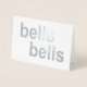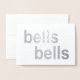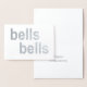 This beautiful card will make your favourite couple's anniversary shine! On the front, the words "bells bells" are printed in metallic shiny silver foil. Inside, the words "happy anniversary"--fully customisable with any text you prefer--appear in silver-tone colour. The words are all in simple, plain modern lettering, on a white background. Perfect for twenty-fifth wedding anniversaries (or any anniversary!), or customise the inside message with wedding congratulations.