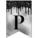 Elegant silver foil pattern with black dripping glitter and diamond hearts design