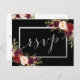 Silver Foil Burgundy Floral Black Wedding RSVP Postcard