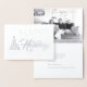Share your holiday wishes this Christmas season with a unique personalised silver foil photo card. Front of this card features a simple design of a white and silver Christmas tree decorated with silver balls and delicate snowflakes with a modern script which reads "Happy Holidays". Inside top of the card has a family photo for you to change to your own for a one of a kind card your family and friends will adore. Inside bottom reads "May you have a blessed holiday season and Happy New Year!" You may also personalise with your signature with family name and first names. Designed by artist © Susan Coffey. Photography © Storytree Studios, Stanford, CA.