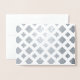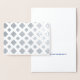 Decorative anniversary card features a bold, geometric pattern of large and small silver foil diamonds on a white background. The white forms a lattice which separates the diamond shapes. Easily customise the message for any occasion.