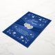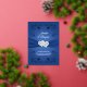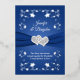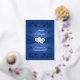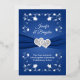 This romantic wedding invitation has real silver foil floral arches above and below a PRINTED ON royal blue ribbon and simulated silver glitter and crystal joined heart brooch across the centre of a blue background. The names of the happy couple appear in white above the ribbon, with the customisable verse below the ribbon that says, "Two lives, two hearts, Joined together by friendship, United forever in love". The back side of the invitation is grey with a royal blue decorative scroll and floral frame around the wording that is in blue with the same pair of double hearts at the top back between the floral arches. There are also RSVP details on the back of the invitation, making this an affordable, yet luxurious wedding invitation that is sure to enchant your wedding guests.