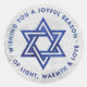 Sticker with a silver foil effect backgroung, with the Star of David and the Hanukkah greeting, "Wishing you a joyful season of light, warmth and love" in a dark blue watercolor effect. Perfect for using as favour stickers on gelt bags.