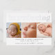 This birth announcement offers a simple modern look to share the happy news of your baby's arrival with your family and friends. This birth announcement features a three photo collage with introducing in silver foil typography. Personalise with all the important details including baby's name, birth date, birth stats and parent's names. The reverse side is coordinated in dusty blue
