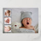 Modern Birth Announcement Card featuring a photo collage with a large background picture and three square photos on the left. The borders arund the three photos on the left along with baby's name and birth stats are in real silver foil. The back has your personlized message in dusty blue. This simple yet elegant Birth Announcement Card is a great way to share your favourite photos of your newborn baby boy.