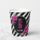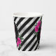 Silver Foil Stripes Floral Hot Pink ID759 Paper Cups
