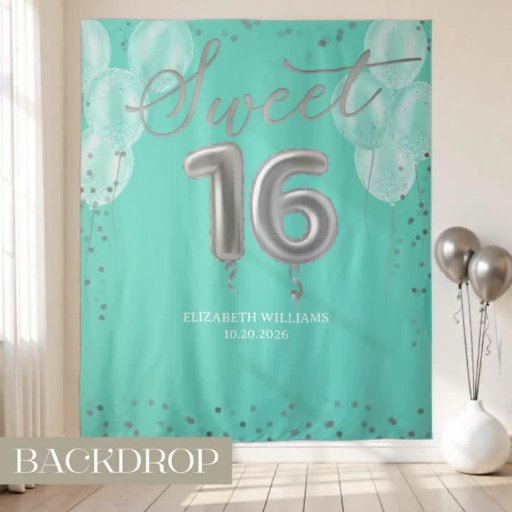 The "Silver Foil Sweet 16 Balloons Royal Teal Backdrop" is a stunning and festive decoration designed by CaMiDesigns. This backdrop features a striking royal teal background adorned with silver foil balloons, creating an elegant and eye-catching design that is ideal for a Sweet 16 celebration. It effectively adds a touch of sophistication and festivity to your party decor. For orders, shipping, product information, and further assistance, please contact Zazzle Customer Care directly.