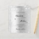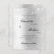 A modern, elegant and minimalist formal wedding invitation. Faux silver looking background decorated with faux glitter. Personalise and add your names and details. Black coloured letters. The first names are written with a modern hand lettered style script.