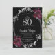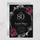 Silver Frame Burgundy Roses Black 80th Birthday Invitation