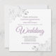 These beautiful wedding invitations feature a design that is simple, sophisticated, chic, traditional and modern all at once. The text is grey and light purple or lavender, with lacy silver faux foil filigree or floral frills in the corners. Perfect for either a formal or modern ceremony.