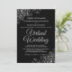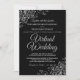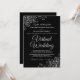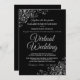 Just because you've been forced to move your wedding to a virtual ceremony, doesn't mean you can't send out beautiful invitations. This elegant invite features fancy pale grey script lettering on a black background with lacy silver faux foil floral filigree or curls and swirls in the corners. Perfect way to invite your friends and family to share in your special day, even if they can't be there in person.